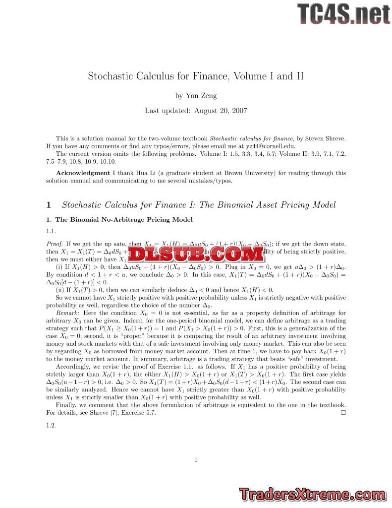 Yan Zeng Stochastic Calculus For Finance Volume I And Ii - JPG Image File