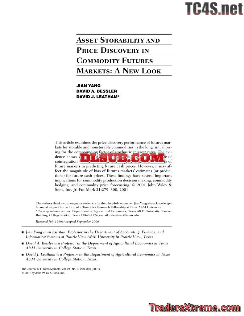 Yang Bessler Leatham Asset Storability And Price Discovery Of Commodity Futures Markets A Ne - JPG Image File