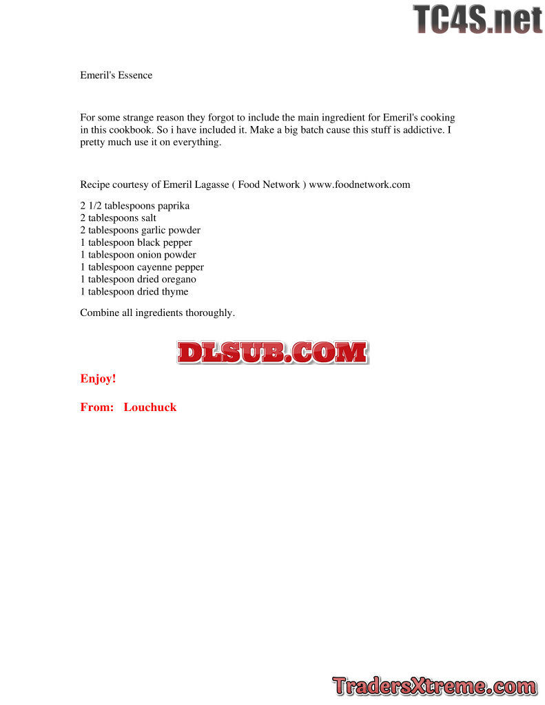 Emerils Essence Seasoning Recipe - JPG Image File