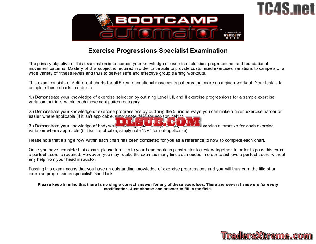 Exercise Progressions Specialist Examination - JPG Image File