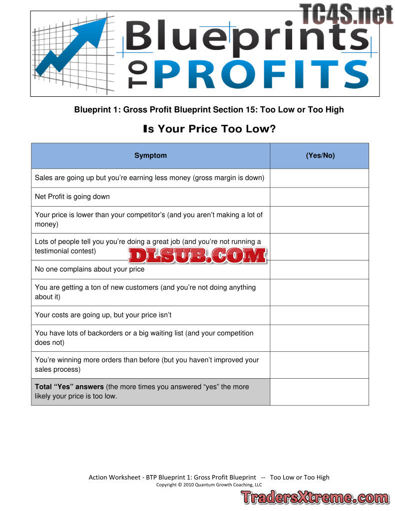Gpb 15 Is Your Price Too Low Action Worksheet - JPG Image File