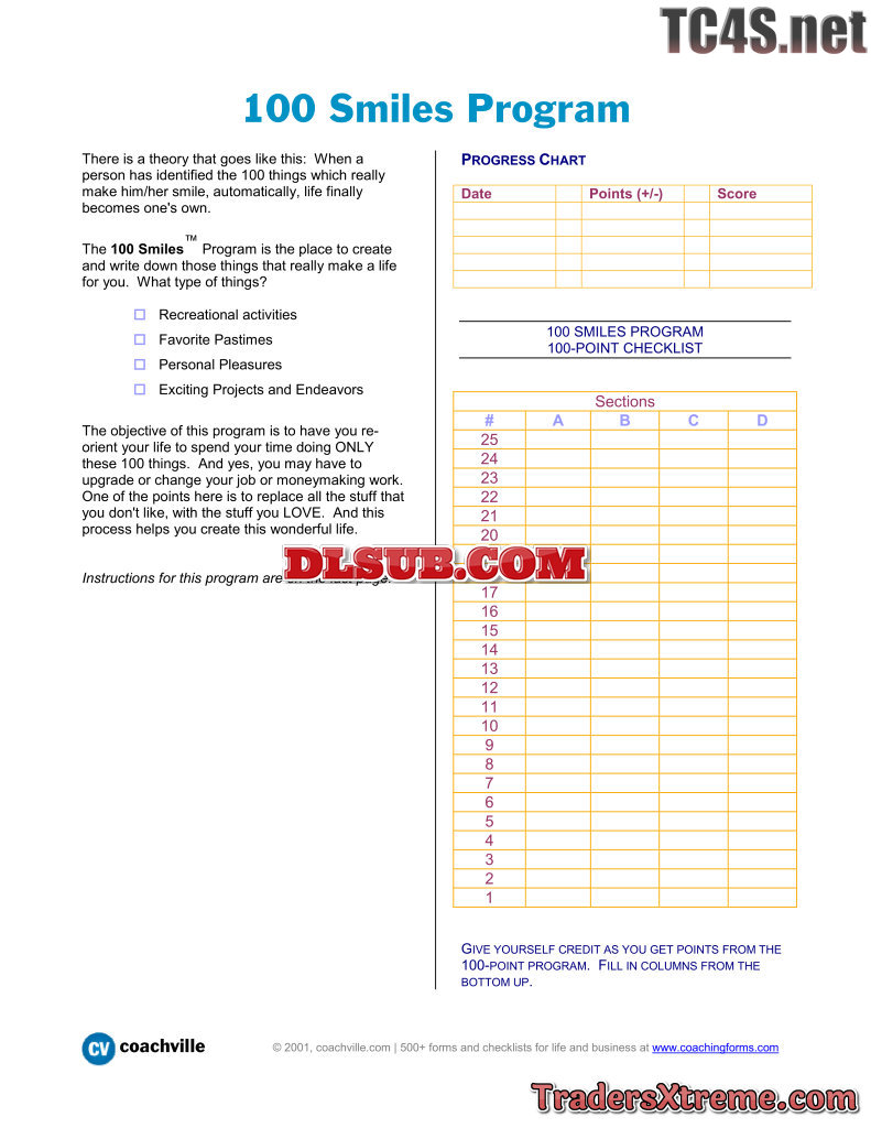 Smiles Program A Worksheet To Write Down 100 Things That Make You Smile - JPG Image File