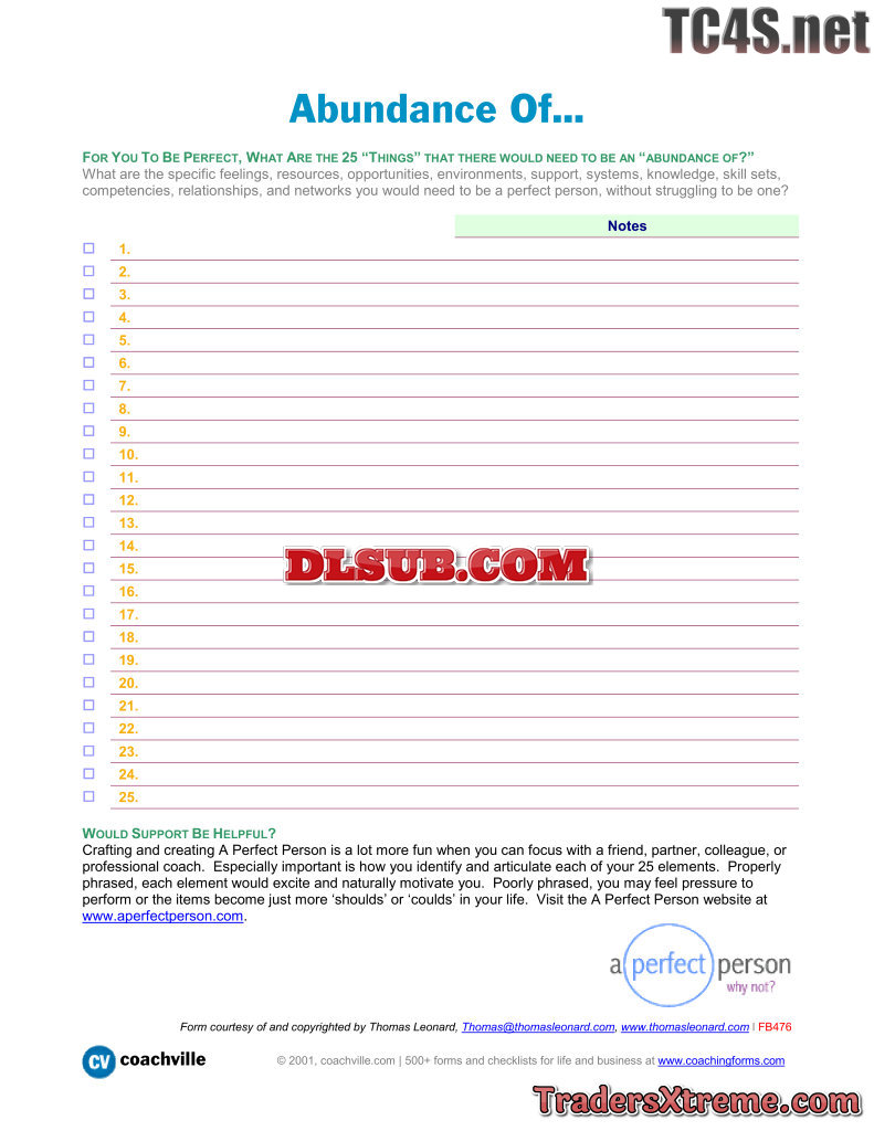 Worksheet To Determine 25 Things You Need An Abundance Of - JPG Image File