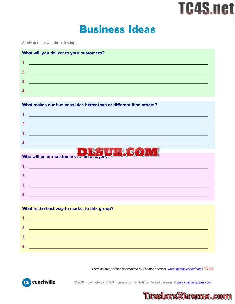 A Worksheet For Coming Up With Business Ideas - JPG Image File
