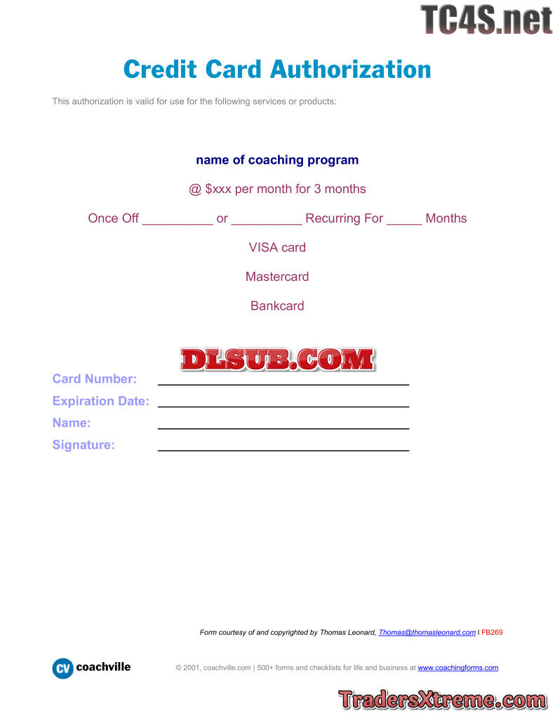 Credit Card Authorization Form - JPG Image File