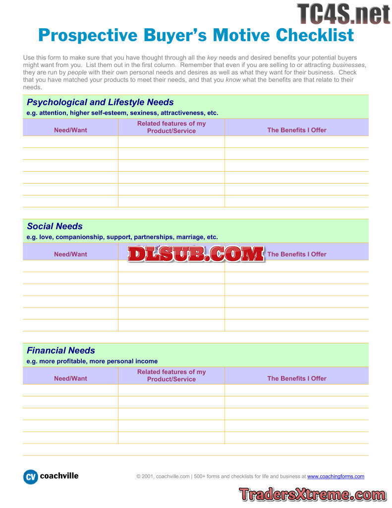 Prospective Buyers Motive Checklist - JPG Image File