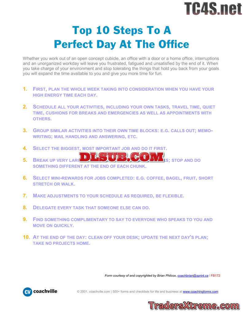 Top 10 Steps To A Perfect Day At The Office - JPG Image File
