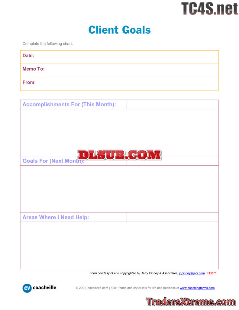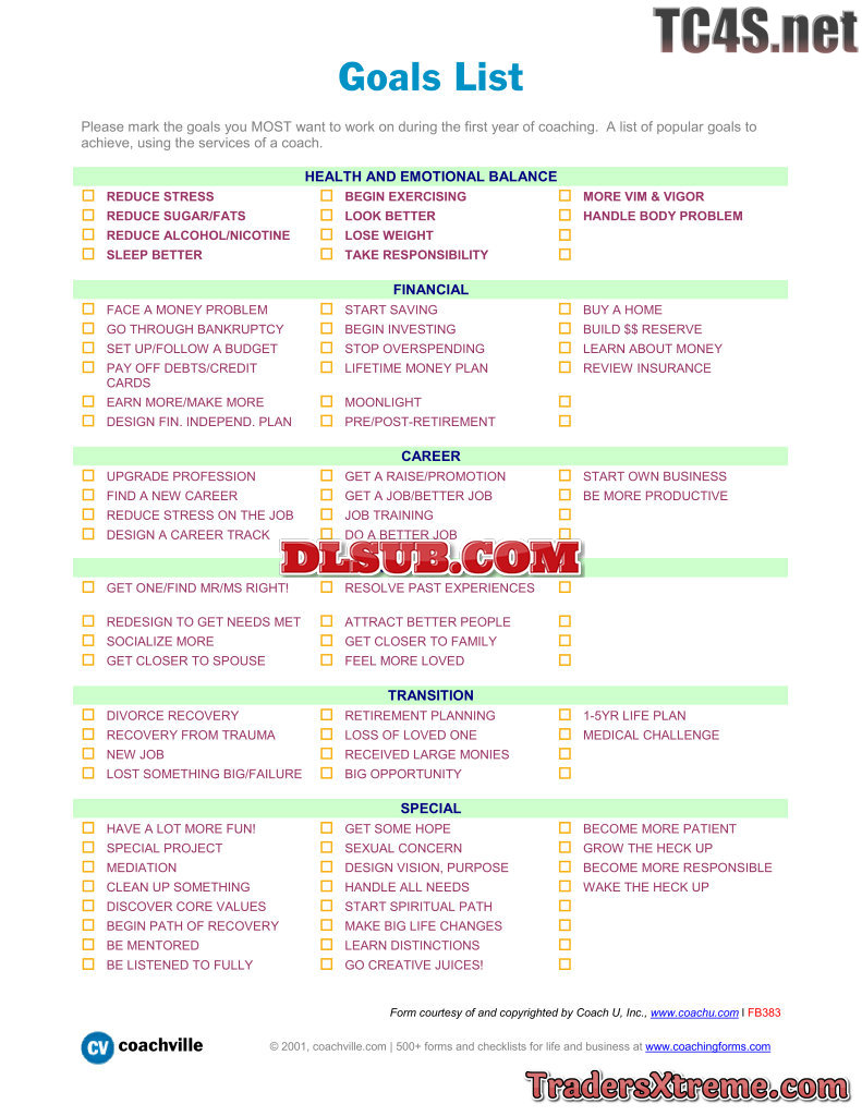 List Of 546 Goals To Work On With Your Coach - JPG Image File