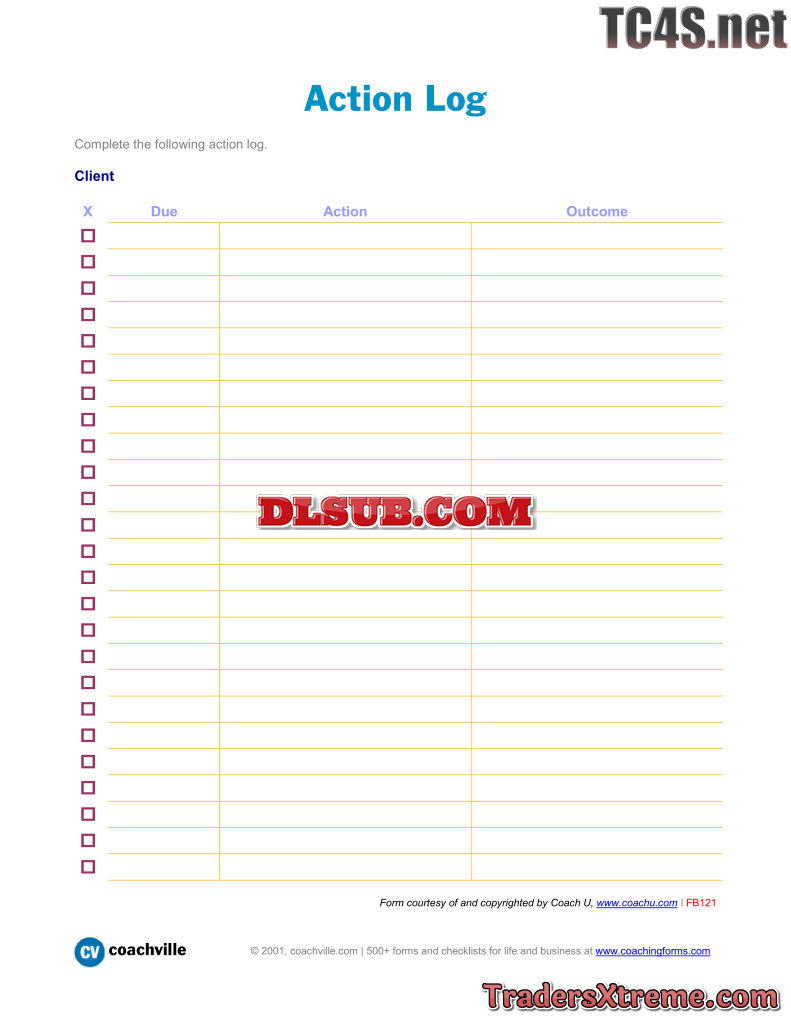 Tracker For Actions And Outcomes Log - JPG Image File