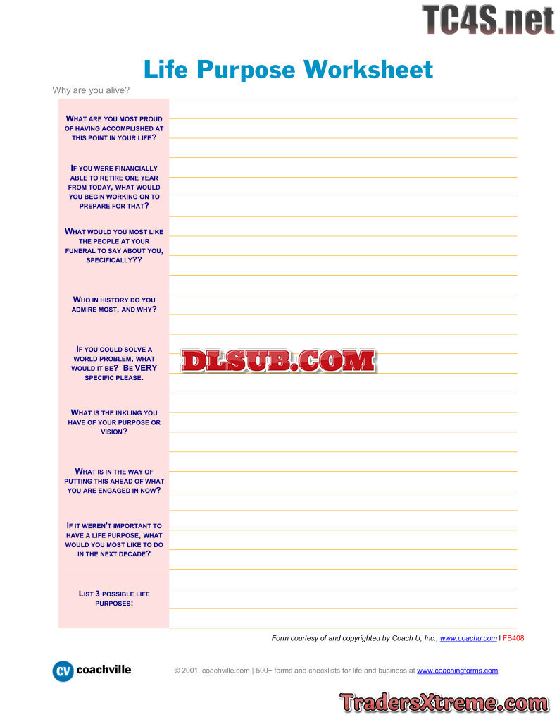 Worksheet For Discovering Your Life Purpose - JPG Image File