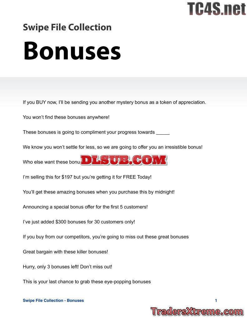 Swipe File Bonuses - JPG Image File