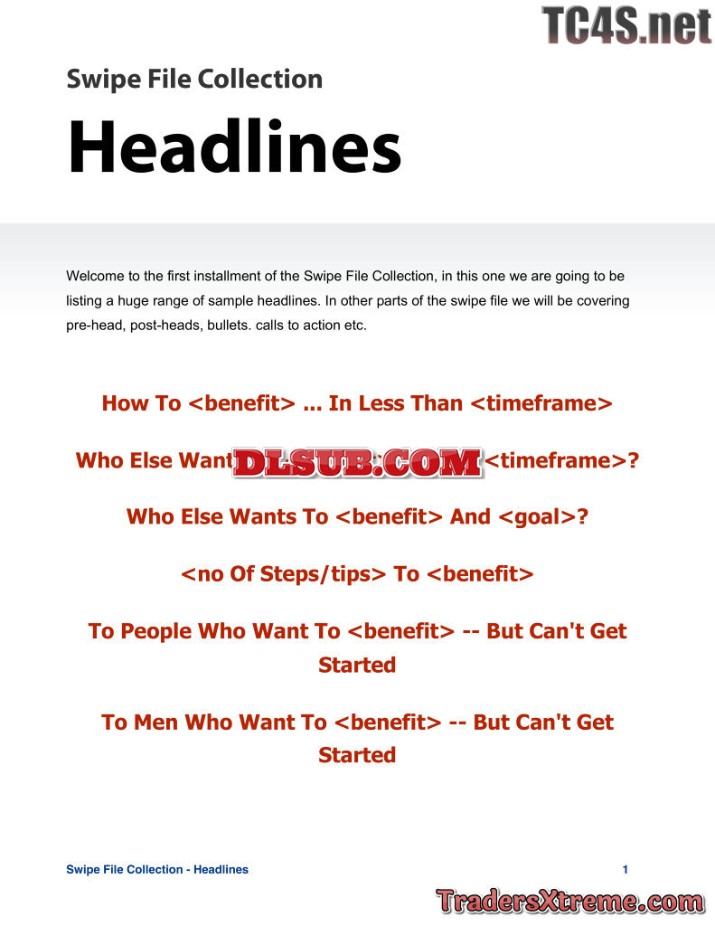 Swipe File Headlines - JPG Image File