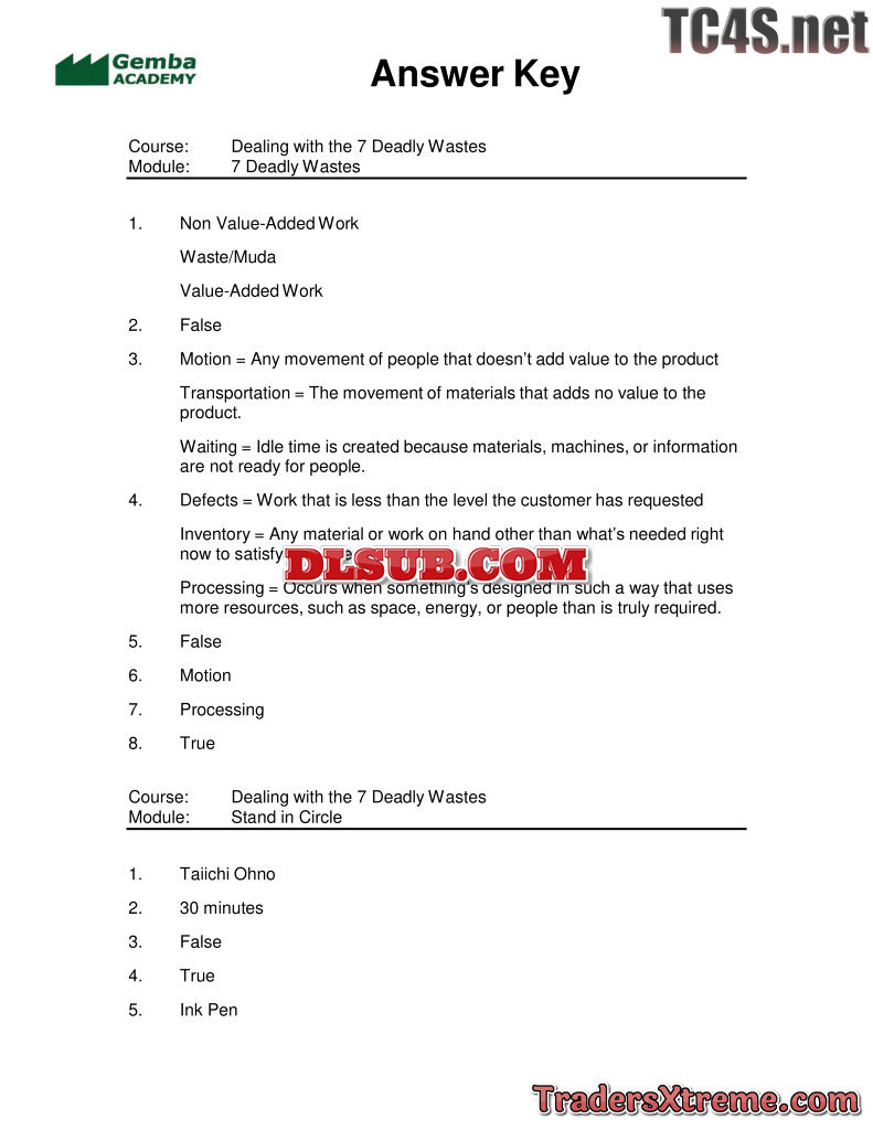 Quiz Answers Seven Wastes - JPG Image File