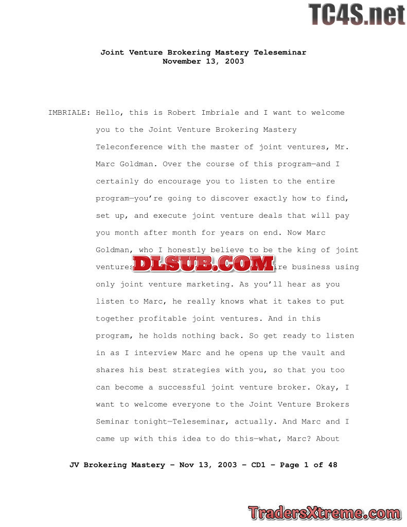 Joint Venture Brokering Mastery Teleseminar Cd1 - JPG Image File