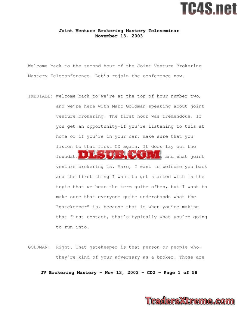 Joint Venture Brokering Mastery Teleseminar Cd2 - JPG Image File