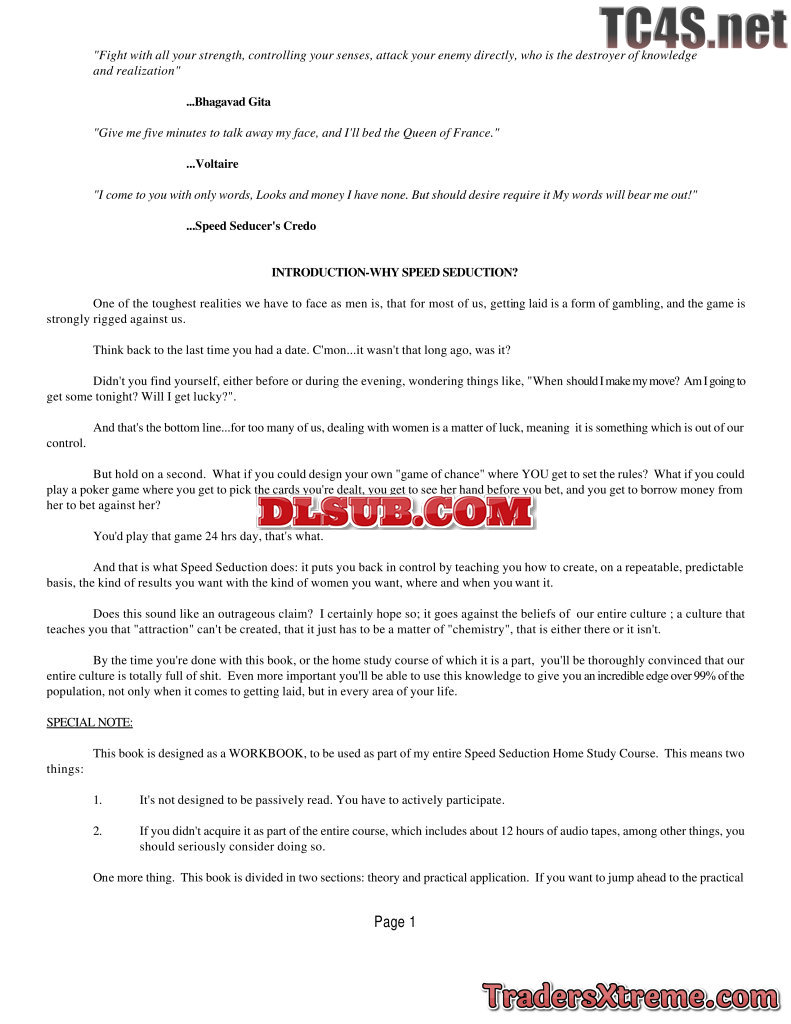 Speed Seduction Workbook 40 Pages - JPG Image File