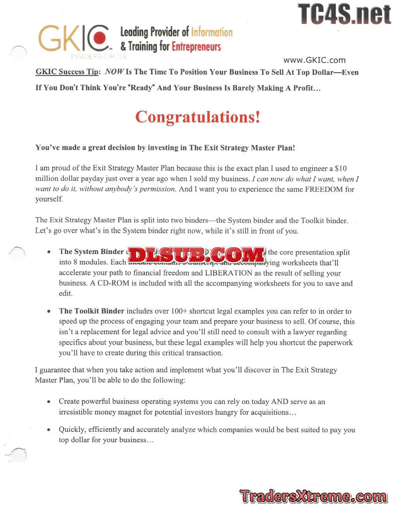 Walter Bergeron And Gkic The Exit Strategy Master Plan Usd 1497