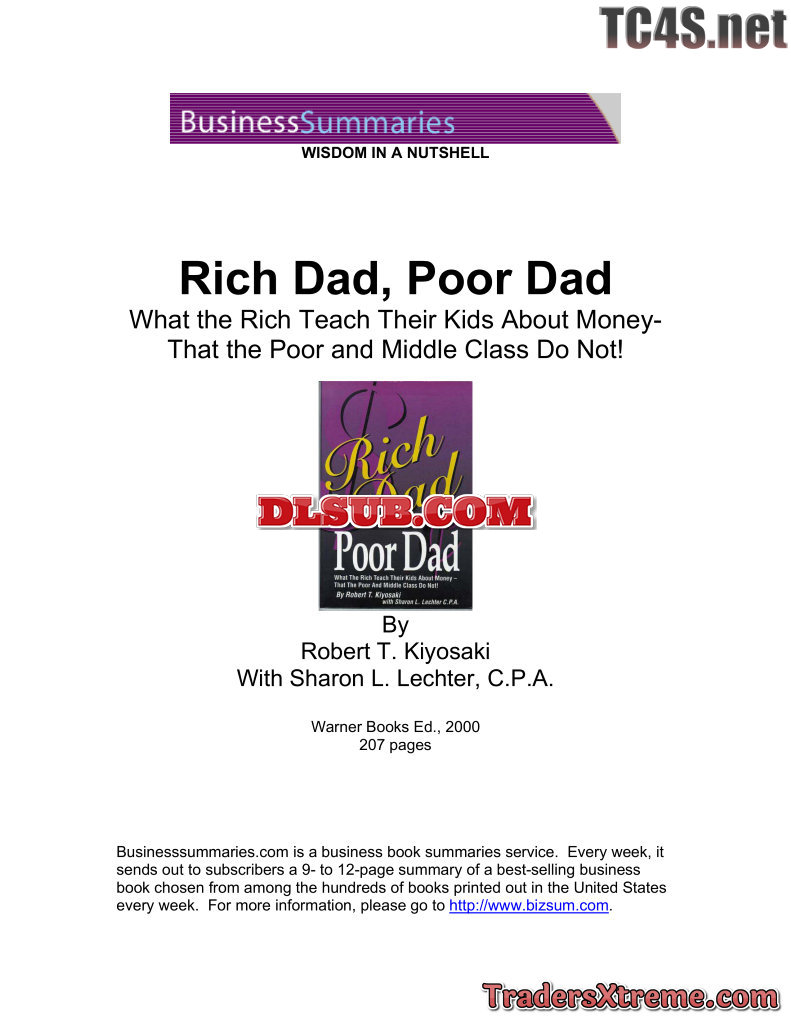 Robert Kiyosaki Rich Dad Poor Dad 10 Page Summary - JPG Image File
