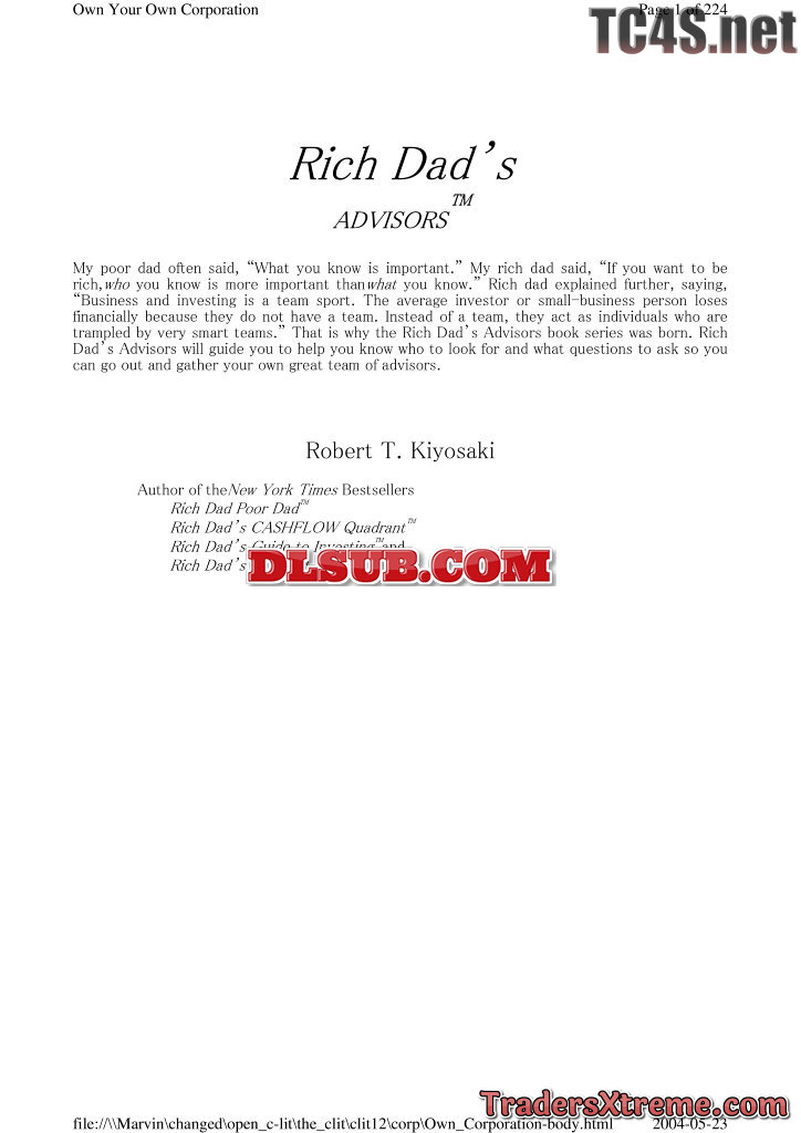 Robert T Kiyosaki Own Your Own Corporation 224 Pages - JPG Image File
