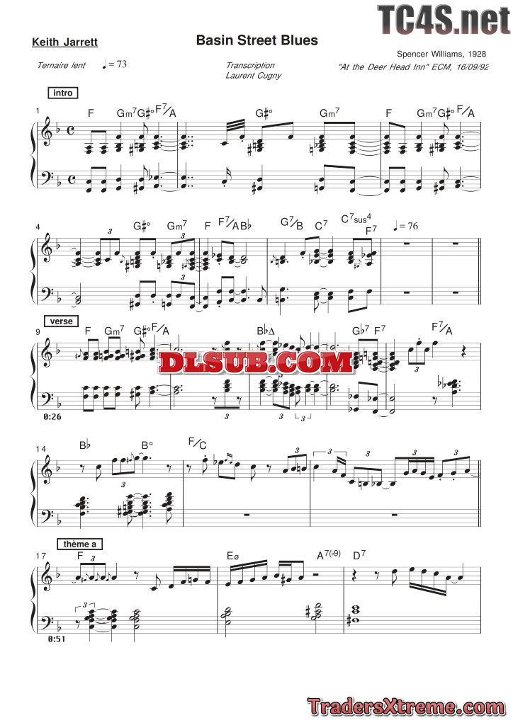 Music Sheet Piano Keith Jarrett Basin Street Blues - JPG Image File
