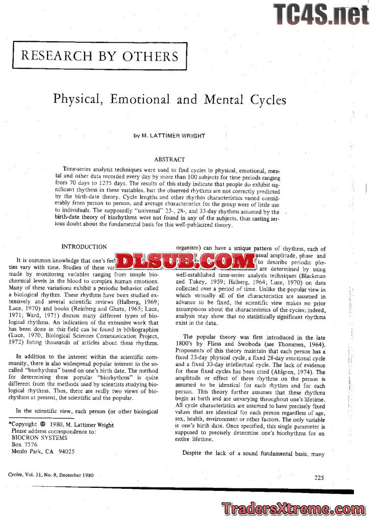 Wright L 1980 Physical Emotional And Mental Cycles 8 P - JPG Image File
