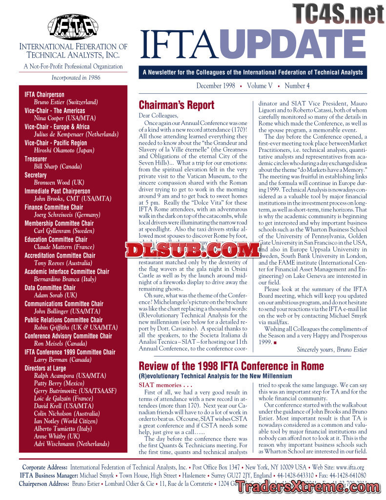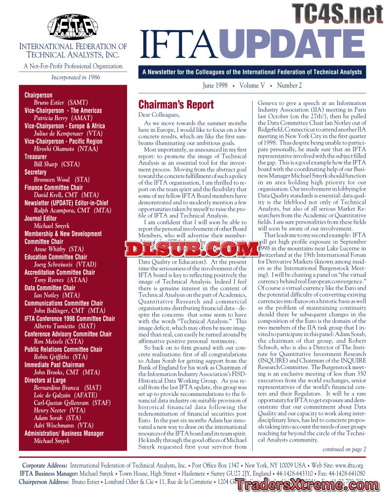 International Federation Of Technical Analysts Ifta Newsletters 12 97 Thru 06 00