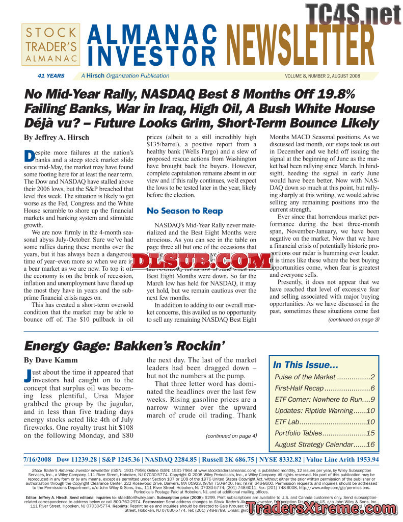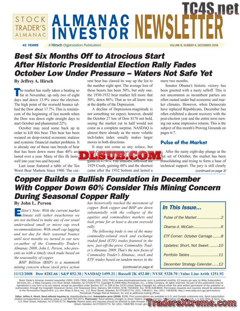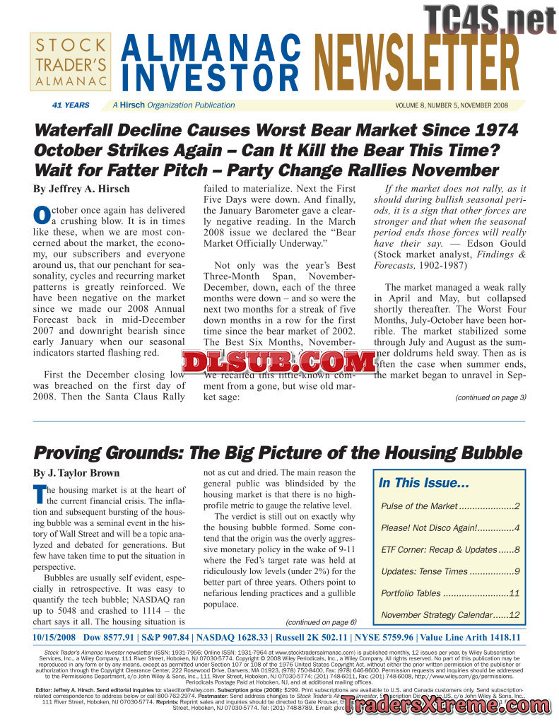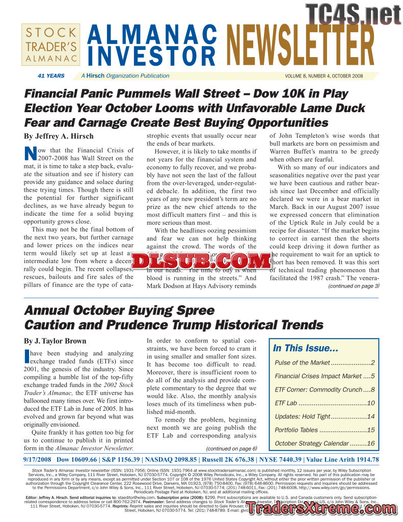 Jeffrey A And Yale Hirsch Almanac Investor Newsletter 2008 2010