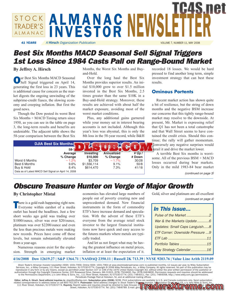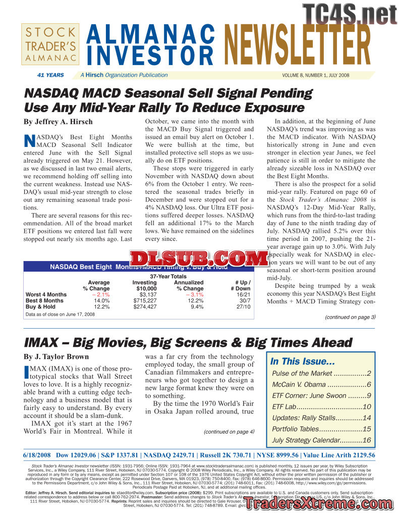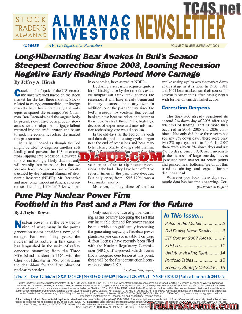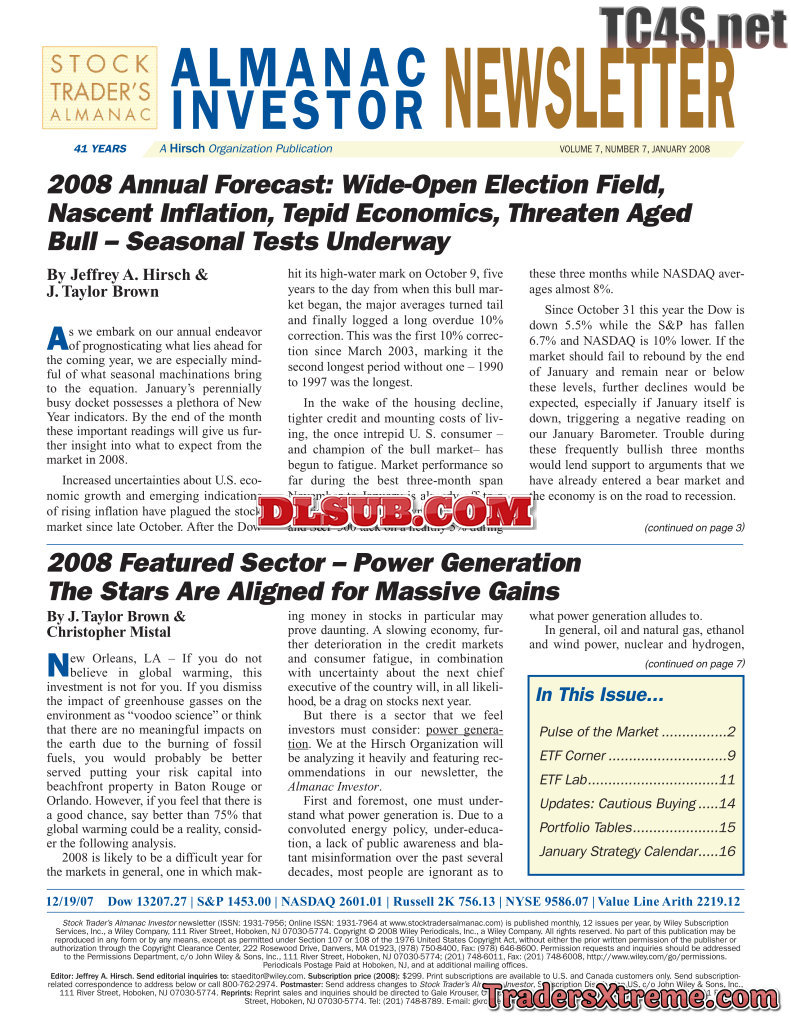 Jeffrey A And Yale Hirsch Almanac Investor Newsletter 2008 2010