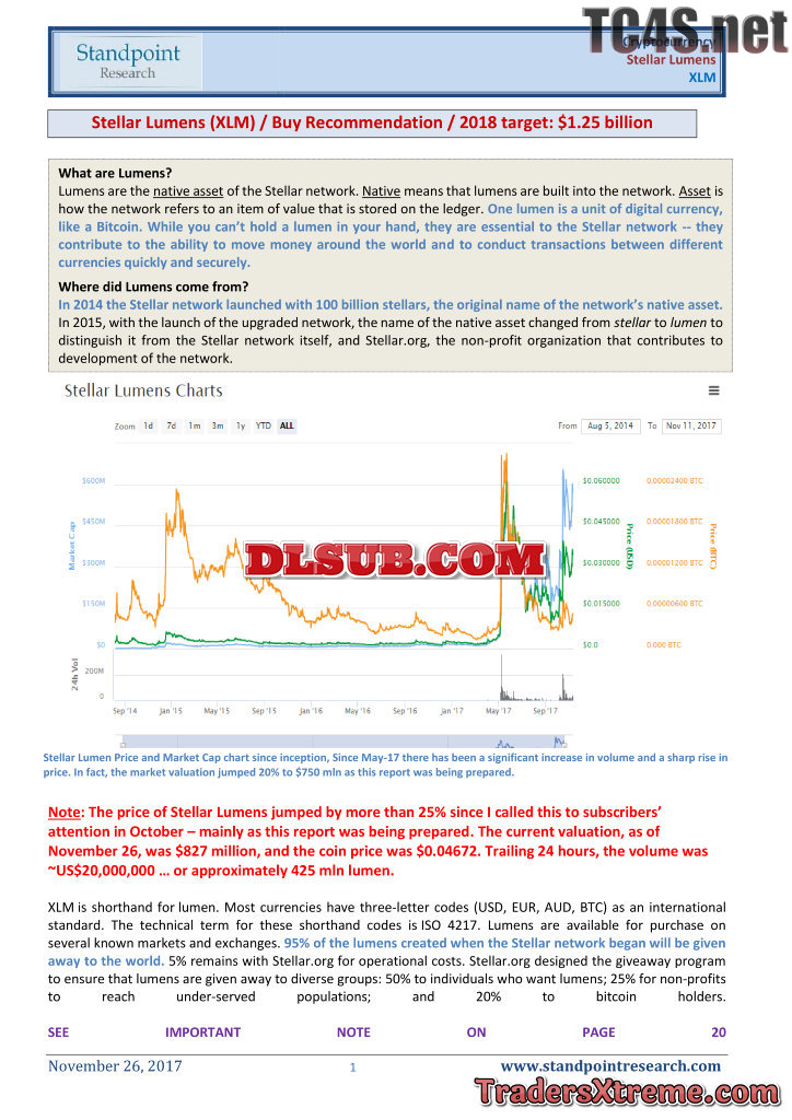 Stellar Lumens Xlm Stellar Crypto Report 26 Nov 2017x - JPG Image File