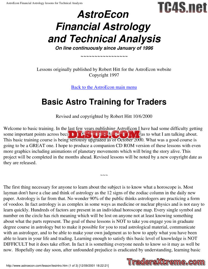 Hitt Robert Astro Econ Financial Astrology And Technical Analysis Lessons - JPG Image File