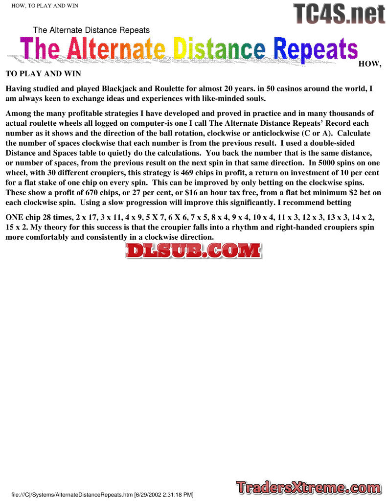 Alternate Distance System For Roulette