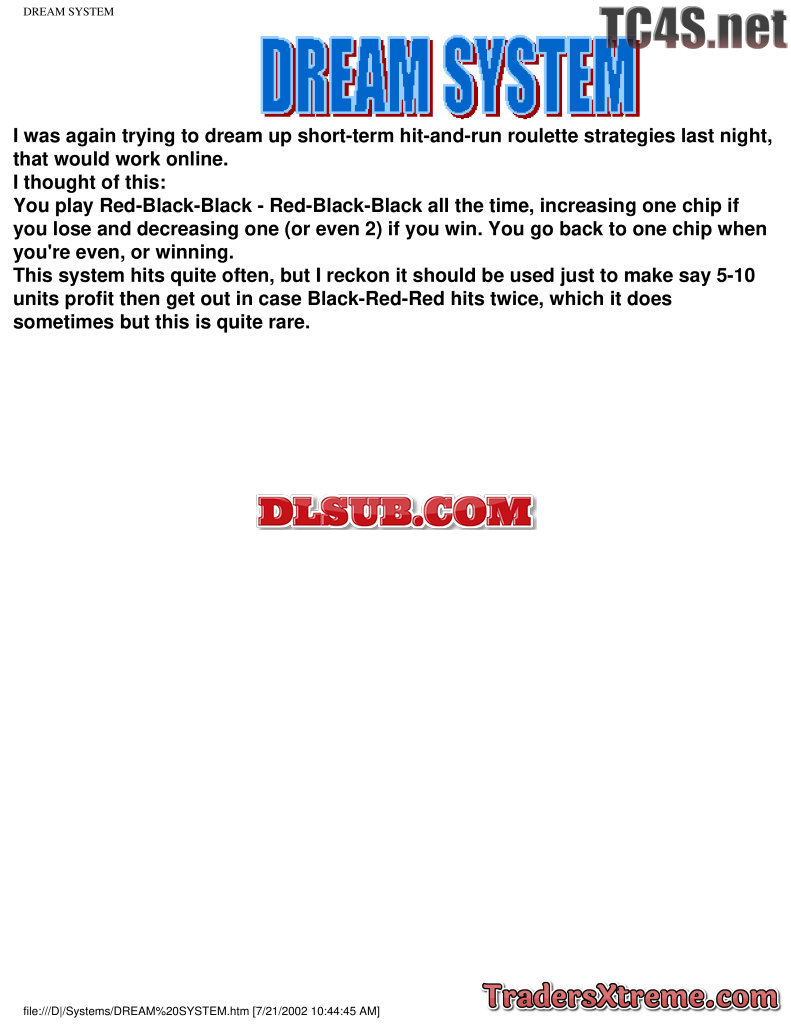 Dream System For Roulette