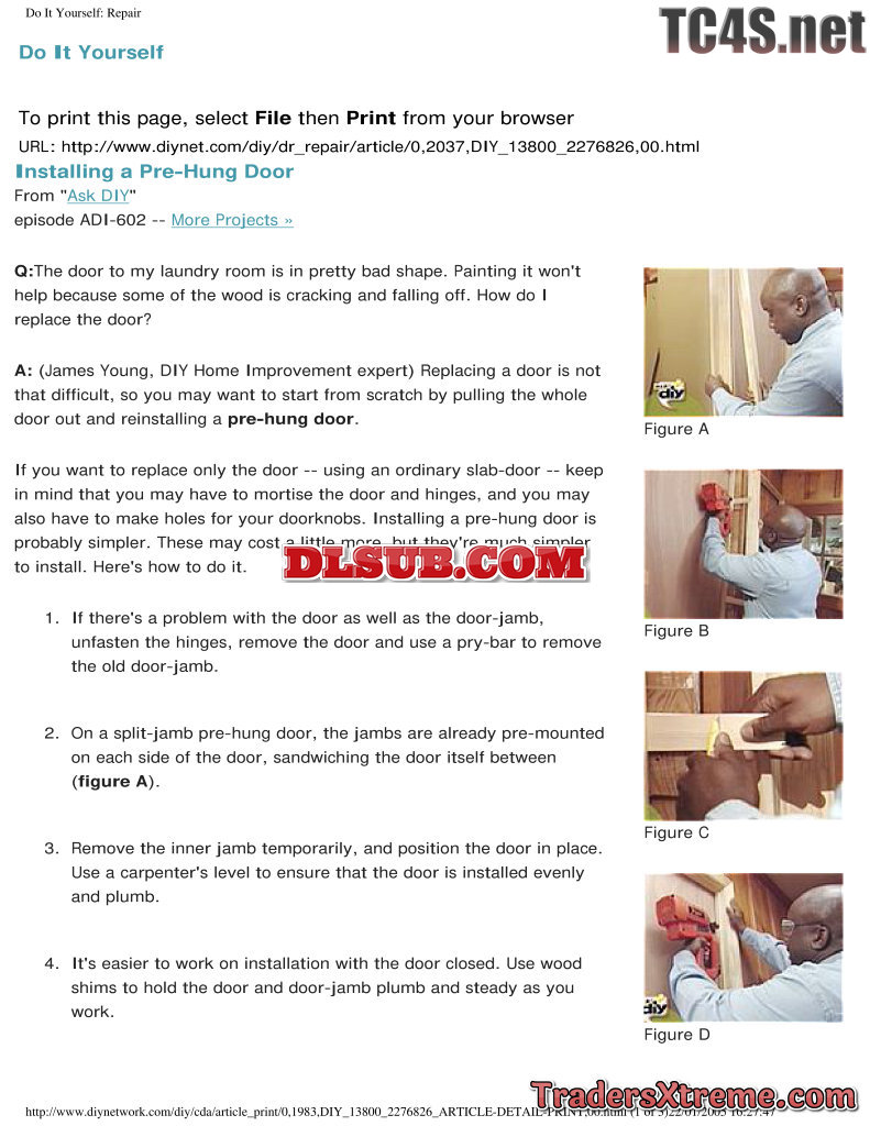 Installing A Pre Hung Door - JPG Image File