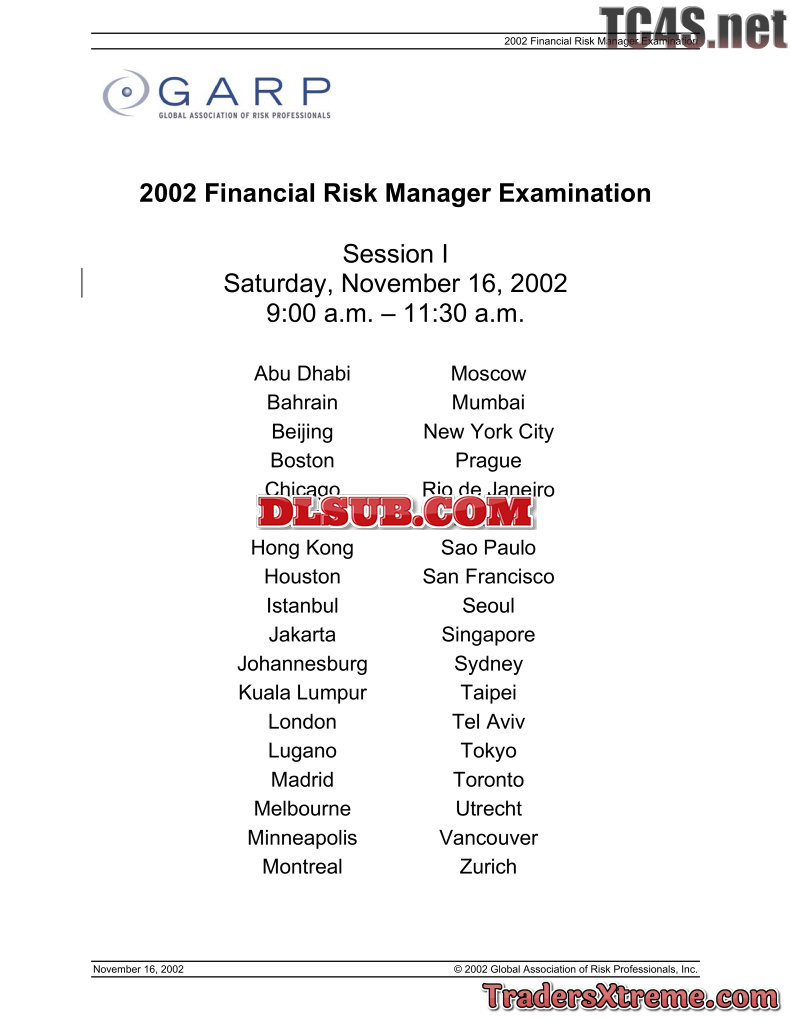 2002 Financial Risk Manager Examination Garp