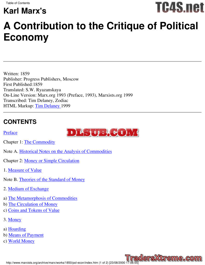 Karl Marx Contribution To The Critique Of Political Economy