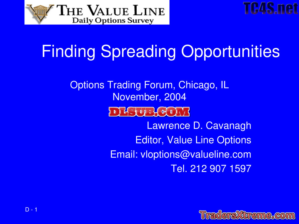 Lawrence Cavanaugh Option Screening Finding Profitable Trades - JPG Image File