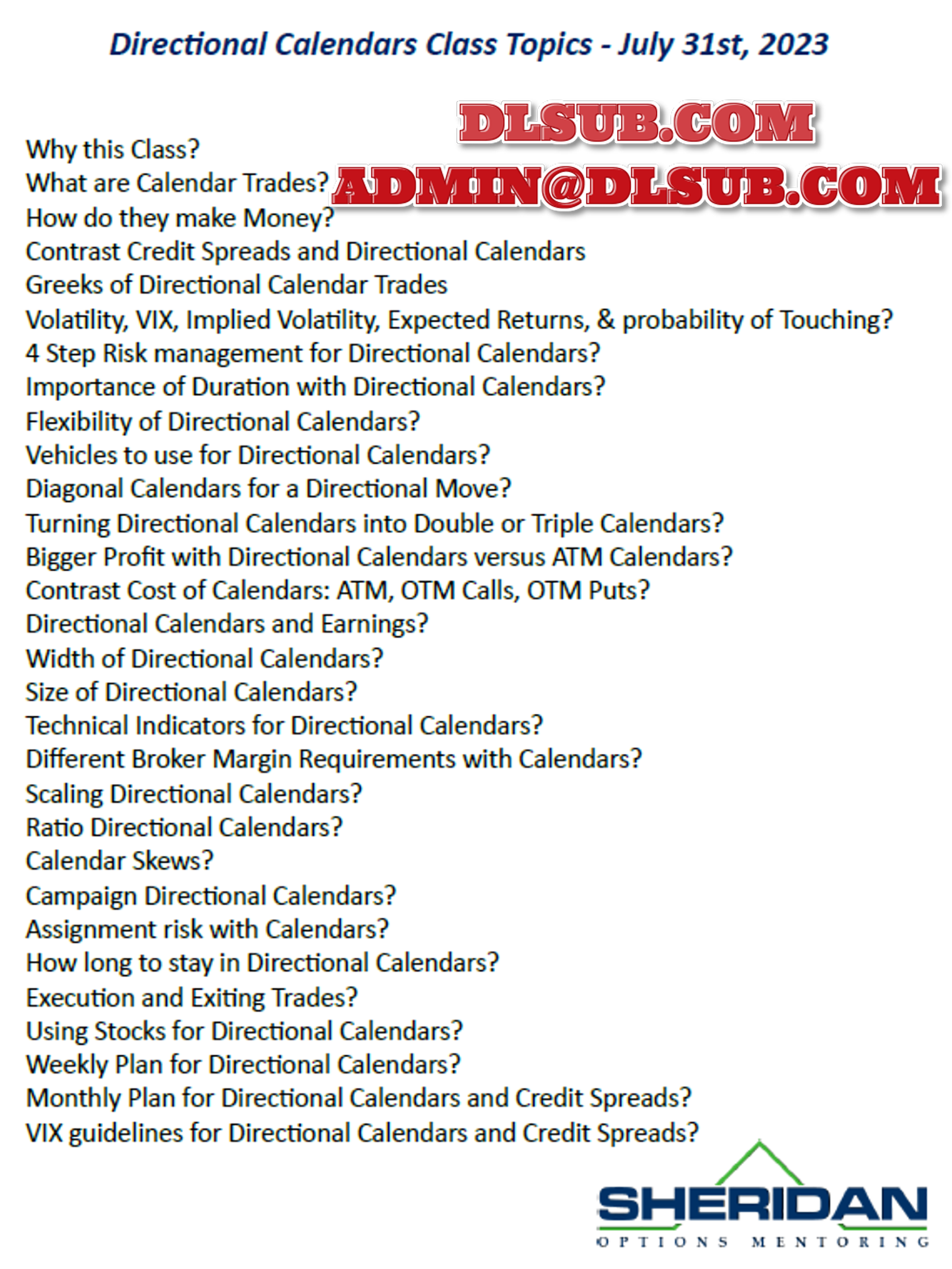 Dan Sheridan Directional Calendars - Microsoft Word Document