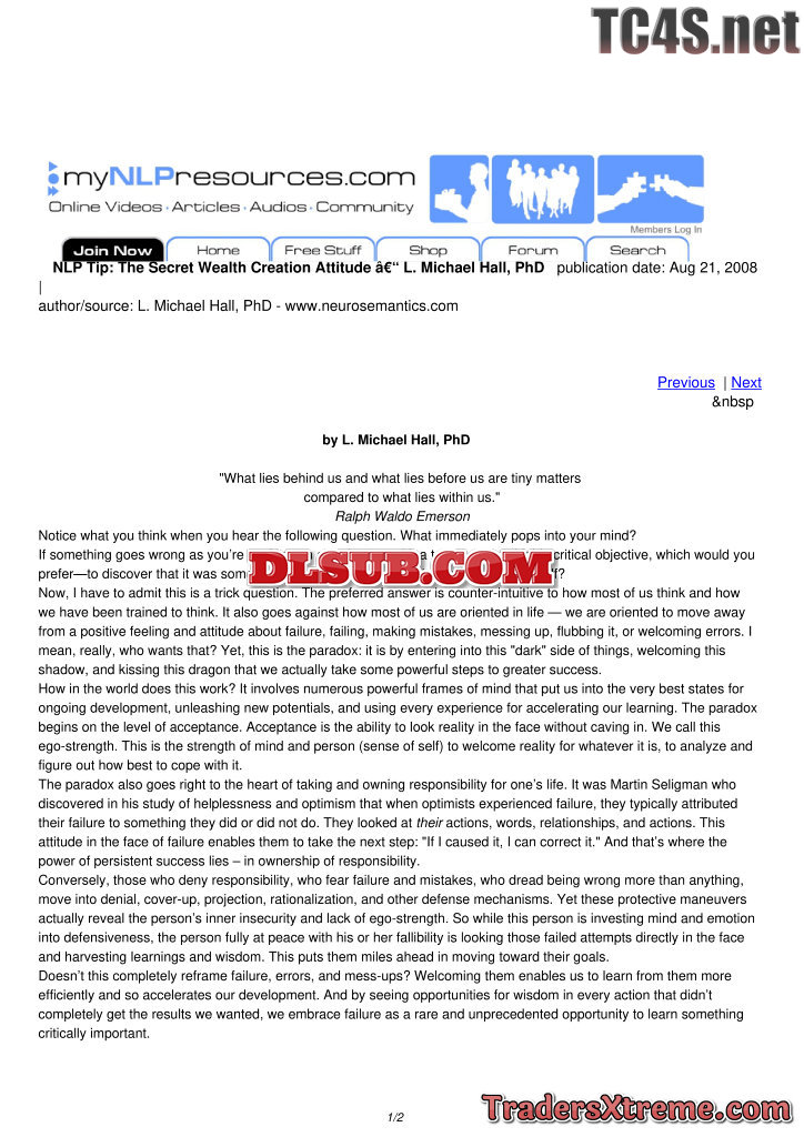 The Secret Wealth Creation Attitude L Michael Hall Phd - JPG Image File