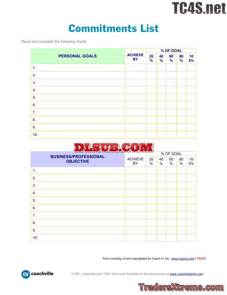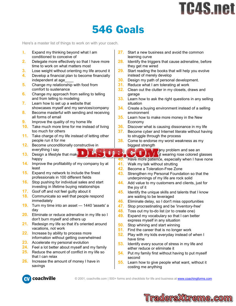 List Of 546 Goals To Work On With Your Coach - JPG Image File