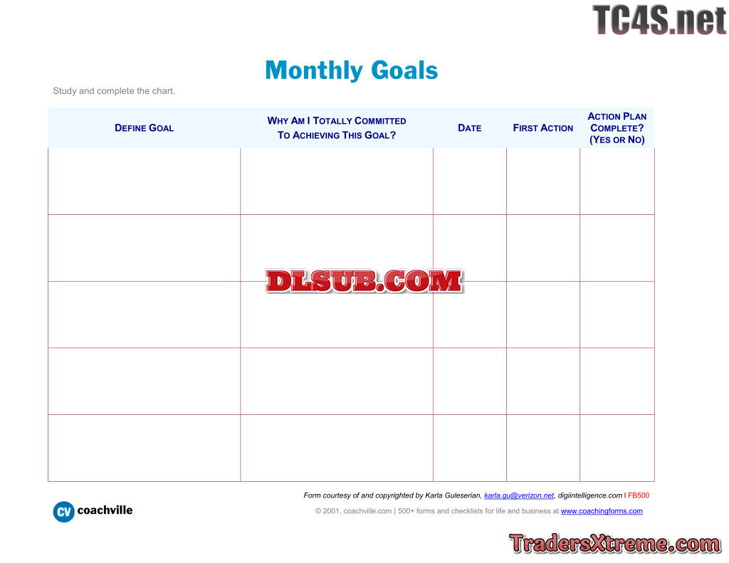 Goal Setting Template Sample - JPG Image File