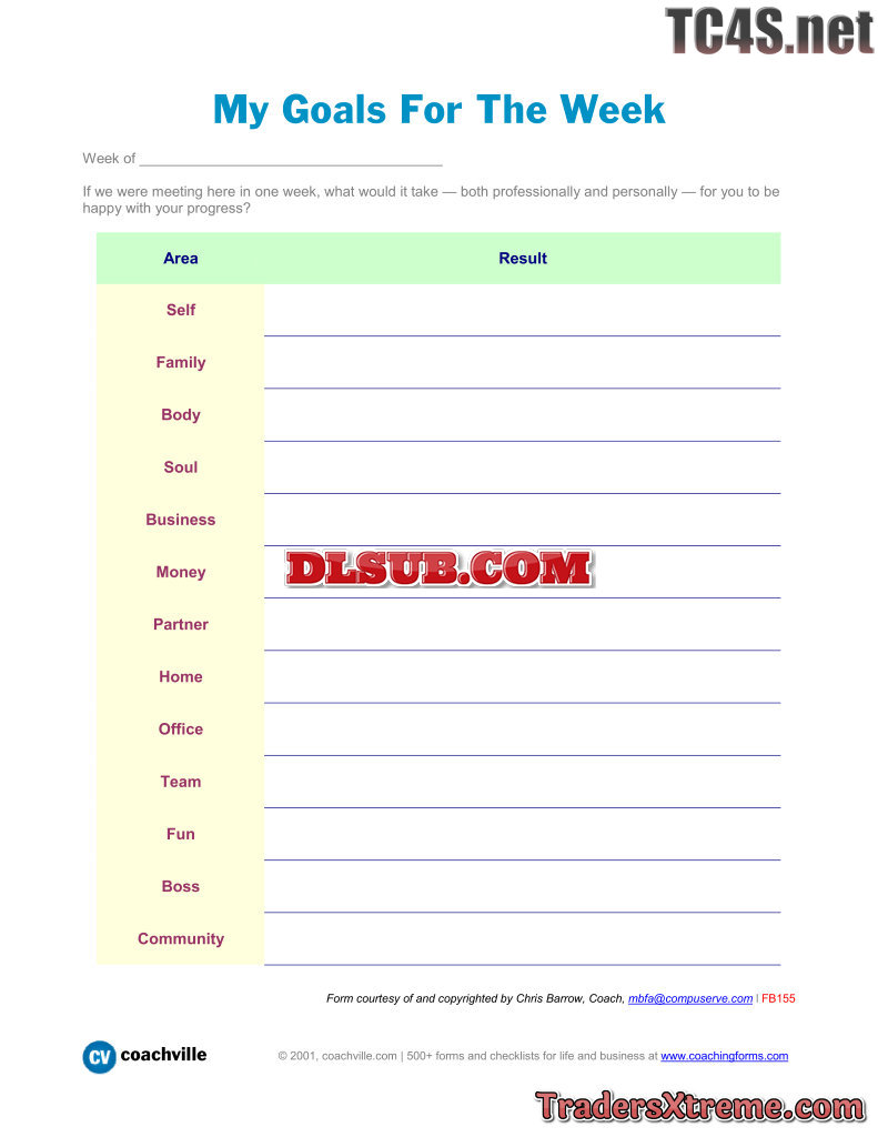 Weekly Goals Worksheet - JPG Image File