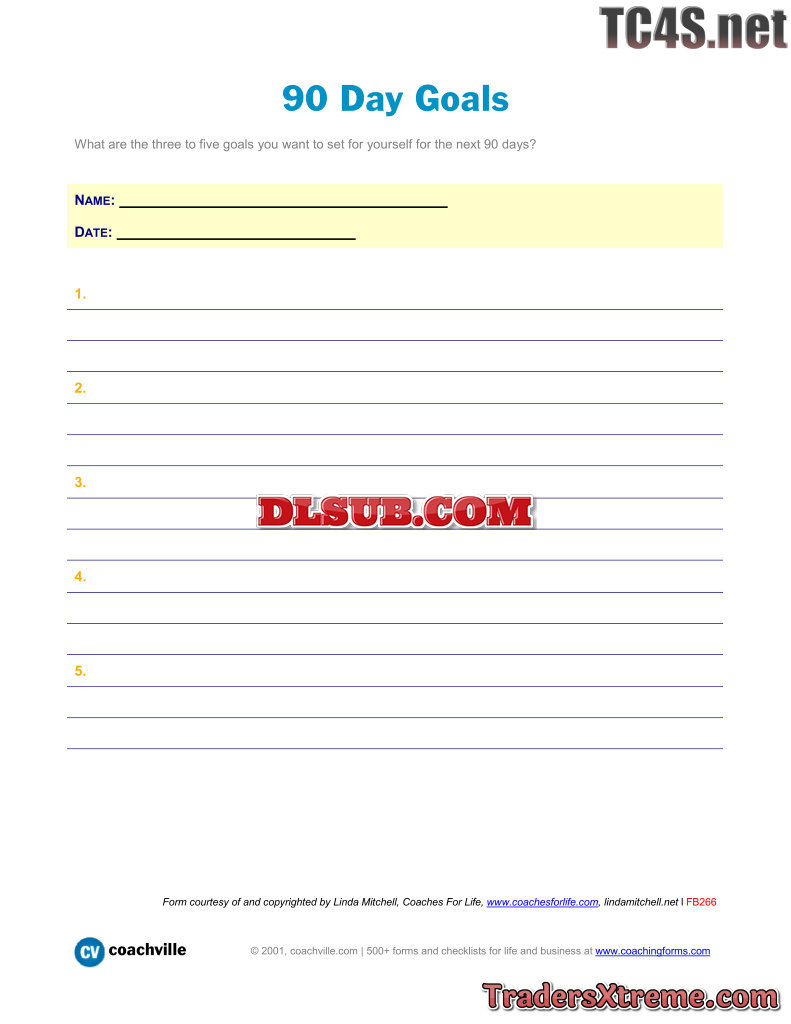 Worksheet For Documenting 3 To 5 Primary 90 Day Goals - JPG Image File