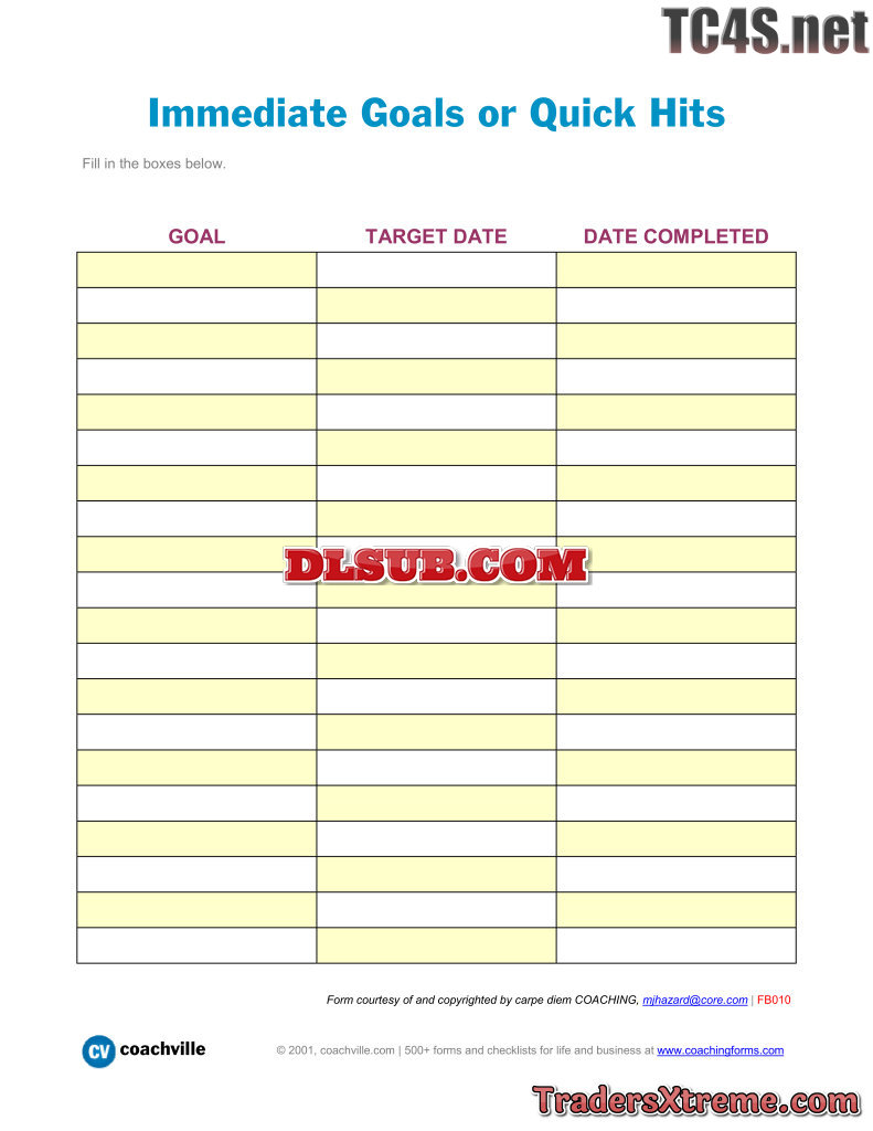 Worksheet To Track Immediate Goals Or Quick Hits - JPG Image File