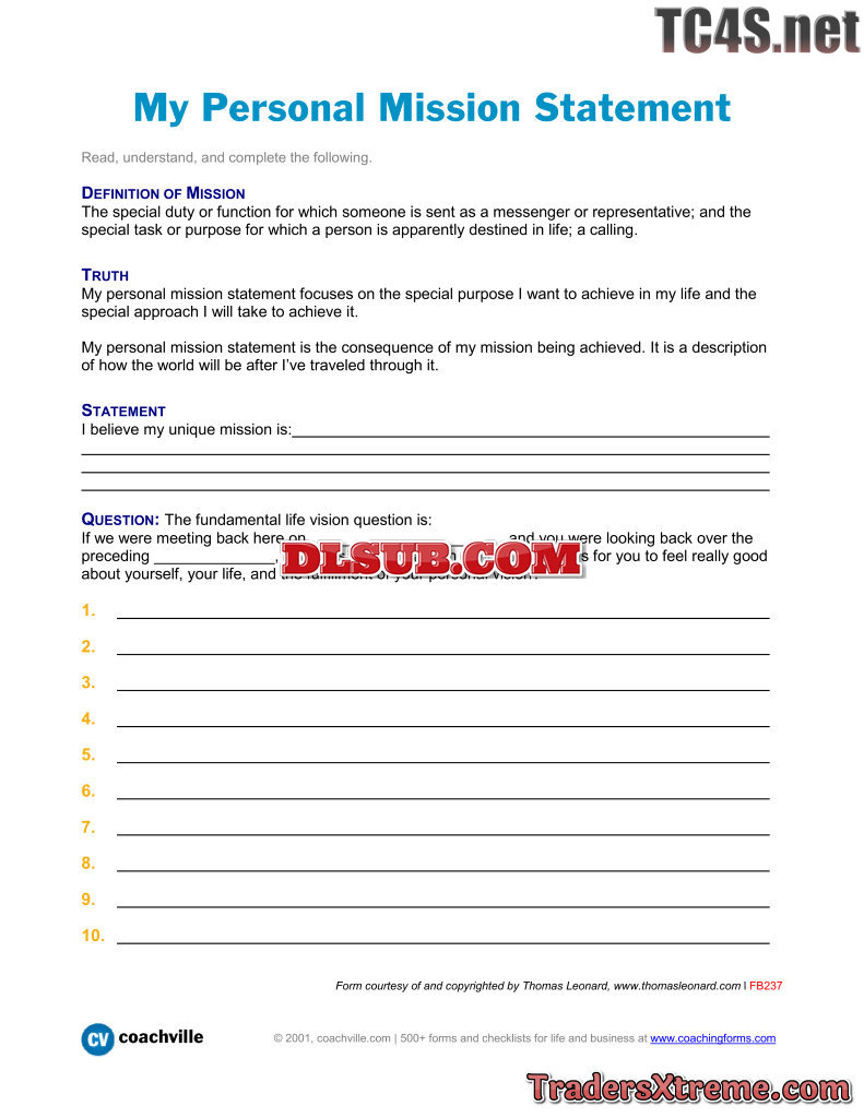 Write A Personal Mission Statement Worksheet - JPG Image File
