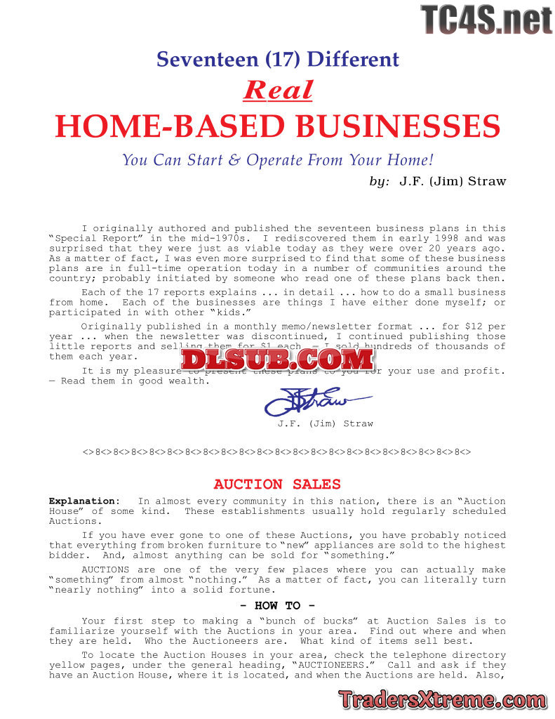 Seventeen Different Real Home Based Businesses You Can Start And Operate From Your Home - JPG Image File