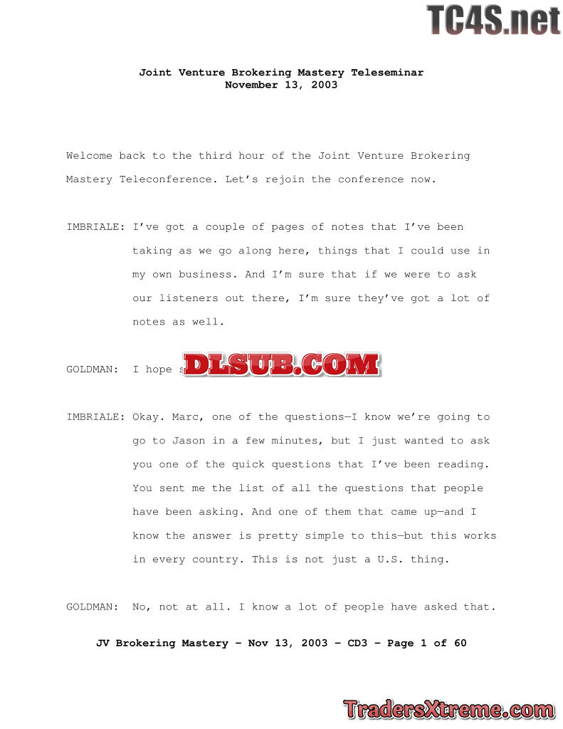 Call 3 Jay Abraham Marc Goldman Jv Mentorship Program Transcript - JPG Image File