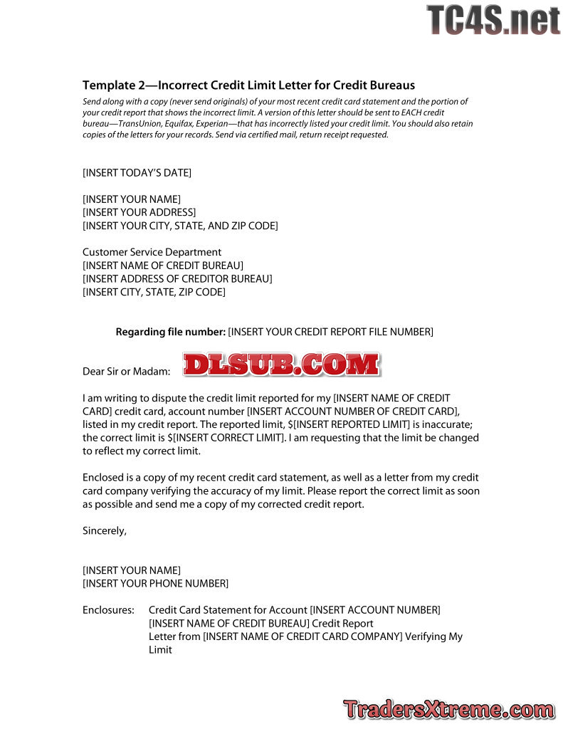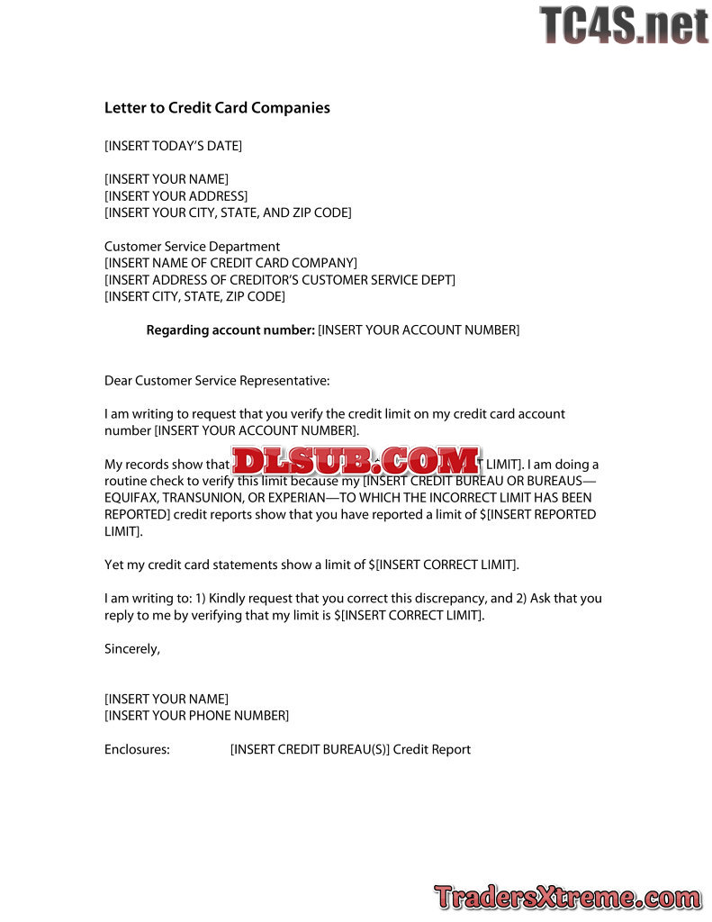 Credit Card Limits Sample Letter To Credit Card Companies - JPG Image File