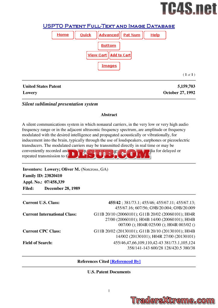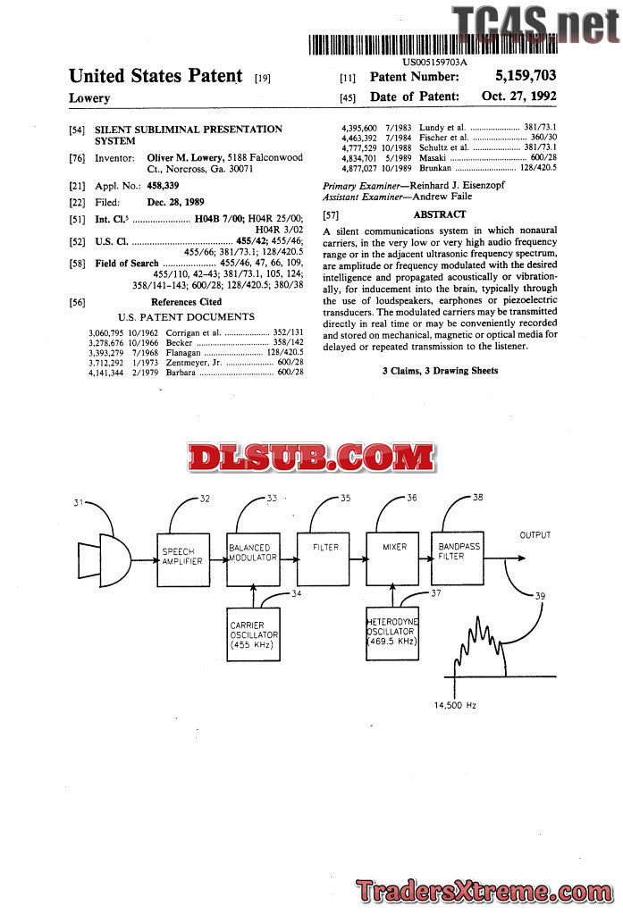 Lowery Patent Silent Subliminal Presentation System