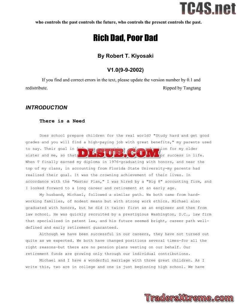 Robert Kiyosaki Rich Dad Poor Dad 10 Page Summary - JPG Image File