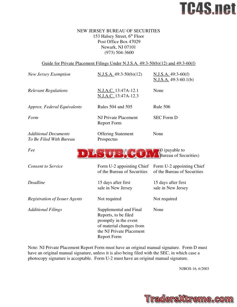 New Jersey Private Placement Instructions - JPG Image File